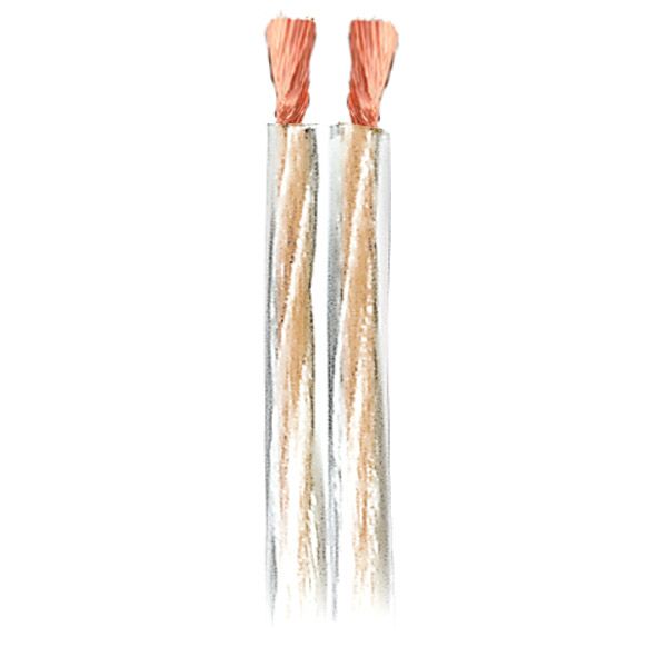 Romex type solid core wire: Actually, this isn't by "Romex". The writing on the jacket says "Cabletech 14/2". But it is probably similar to what you would find inside your walls, hooked up to the electrical outlets. It is stiff, flat, pvc insulated three wire solid-core copper. One wire is nude and acts as ground wire for an AC outlet. I did not connect that wire, but left it in the insulation. I simply connected the black insulated wire to the black speaker terminal, and white to red. (As with other wires, including audiophile wires, I found the writing on the jacket properly corresponds to the direction of signal flow. That is, the writing should read from the amp output toward the speaker input.)